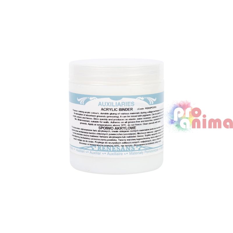 Универсален продукт подходящ за самостоятелно приготвяне на акрилни бои (можете да го смесвате със сухи пигменти), за трайно залепване на различни материали при колажни техники (служи като лепило за здраво съединяване на различни материали) или за намаляване на абсорбцията при силно порести повърхности (платно, дърво, стени).