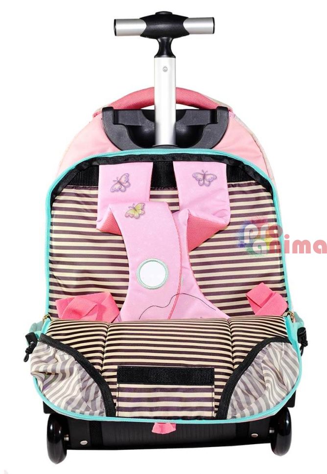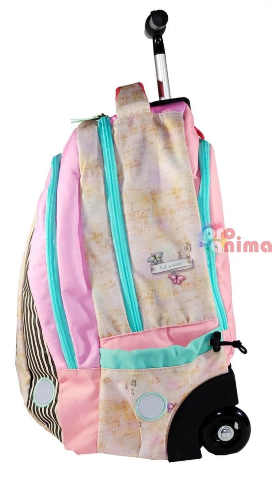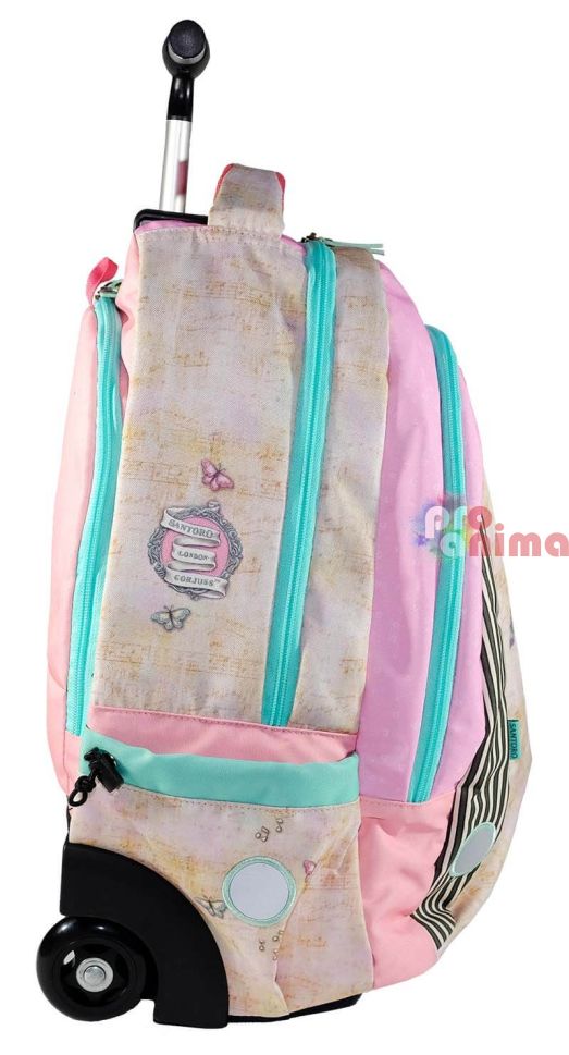 Раницата с колела за училище Santoro Gorjuss Lost in Music е не само красива, но и изключително практична, благодарение на отличното й разпределение и допълнителни джобове. За улеснение на най-малките в пренасянето на тежките учебници и пособия, раницата е снабдена с колелца.