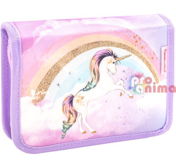 Мек несесер Rainbow Unicorn 2 с един цип. В него лесно се побират моливи, гуми, химикали и др.