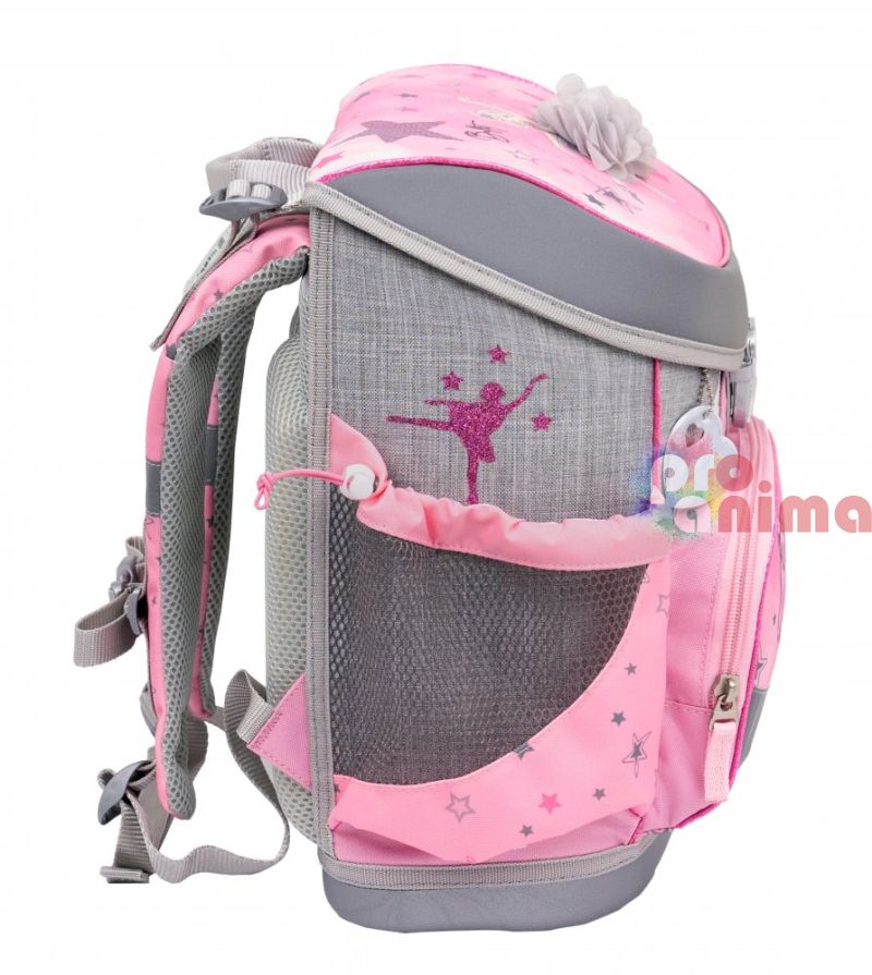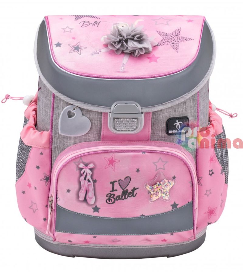 Комплект за първи клас Belmil Ballet Light Pink включва: ергомомична ученическа раница, 2 несесера (твърд и мек) и торба за спорт.
