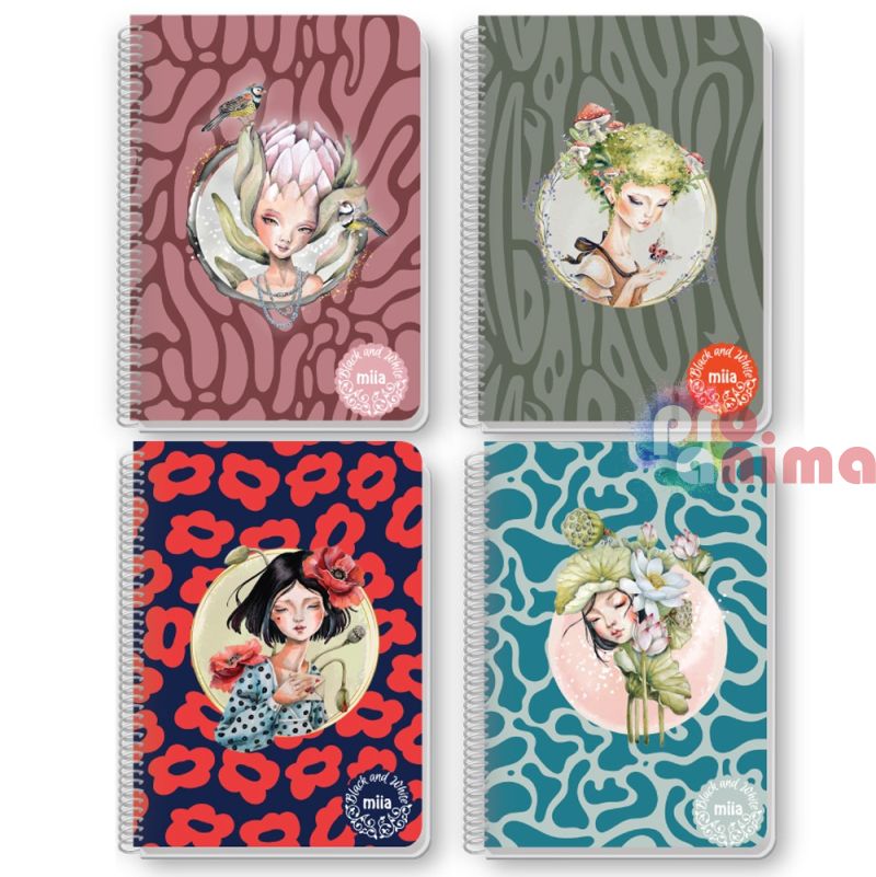 Тетрадка със спирала от серията на Black and White Miia. Нова колекция от вълшебните, авторски илюстрации на Ивайла Стоева (MIIA).