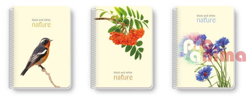 Тетрадка Black&White Nature, малък формат A5, 180 листа, редове, спирала, PP корица