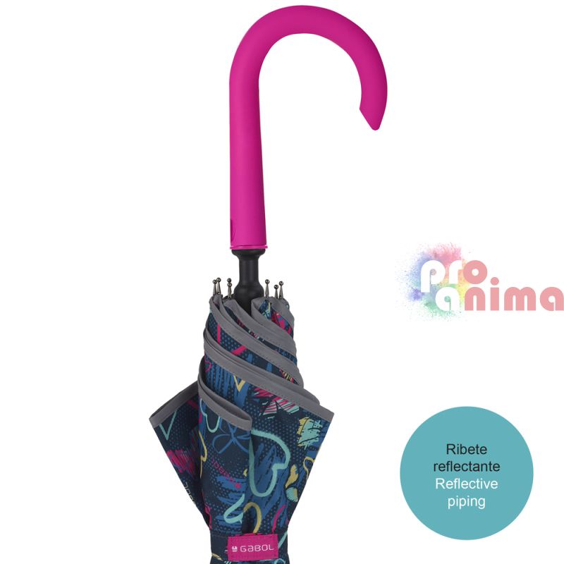 Чадърът Gabol Tizas е чудесно допълнение към всички раници и чанти от същата серия. Здрав и удобен със страхотен дизайн, чадърът за момичета ще внесе усмивки и настроение в дъждовния ден.