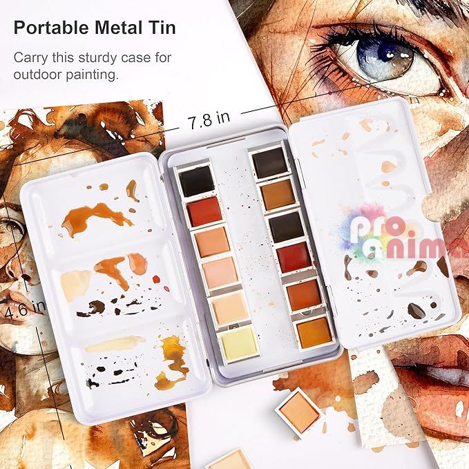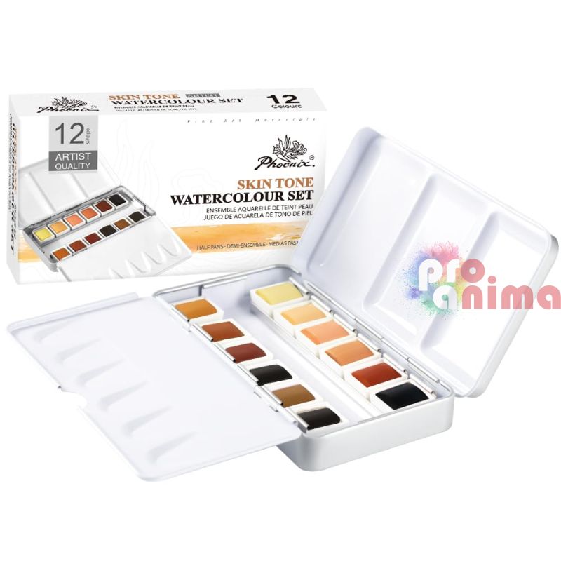 Комплект акварелни бои Phoenix, 12 телесни цвята, в метална кутия