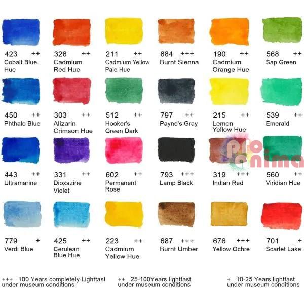 Комплектът акварелни бои Phoenix 24 цвята подходящи за студенти, начинаещи и напреднали творци. Чудесната палитра от цветове е постигната с висококачествени пигменти и добавки. Акварелната боя Phoenix се отличава с по-мек цвят и с по-висока адхезия върху хартията.