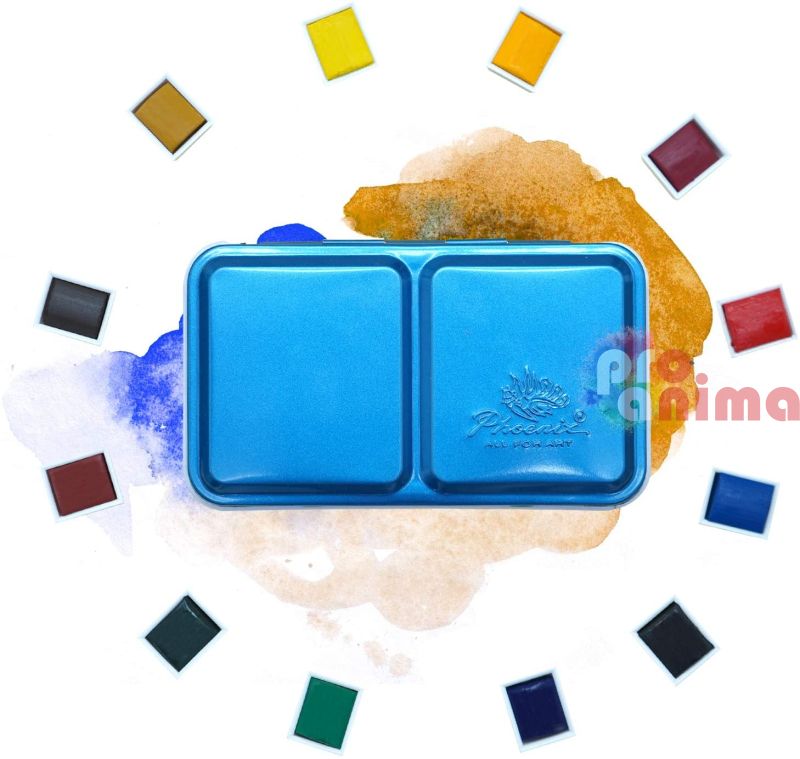 Комплект акварелни бои Phoenix, 12 цвята, в метална кутия