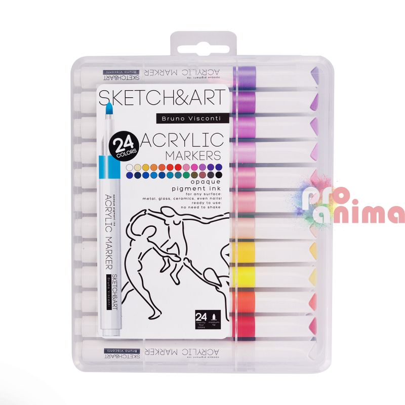 Комплект акрилни маркери Bruno Visconti Sketch&Art- покривни, универсални маркери за всякакви повърхности. Акрилните маркери Bruno Visconti са с мастило на водна основа, подходящо за рисуване върху всякакви повърхности: хартия, метал, дърво, керамика, стъкло, камък и платна за рисуване;