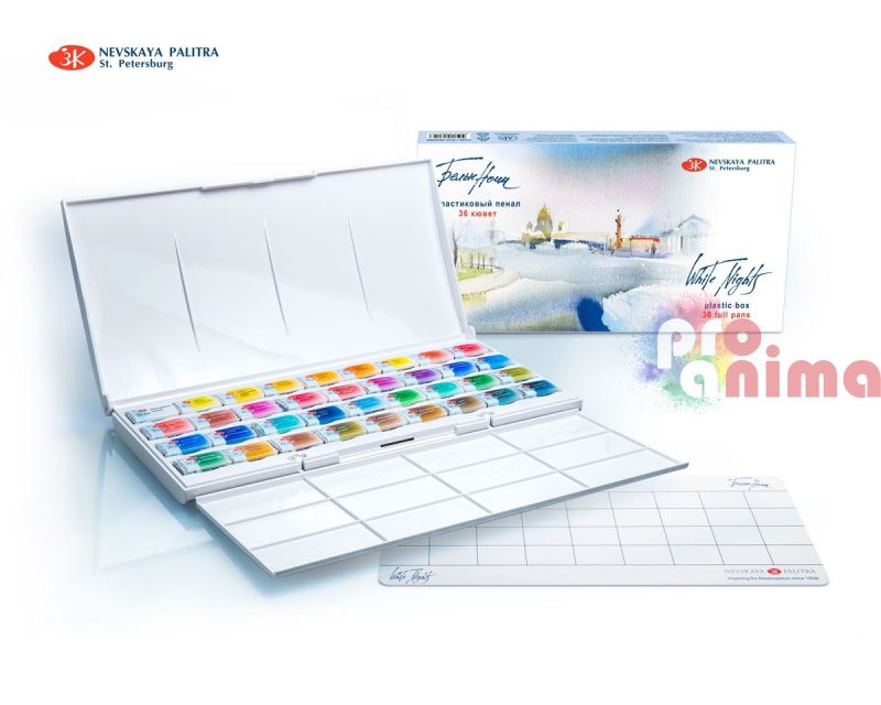 Акварелни бои Бели нощи, 36 цвята, пластмасова кутия