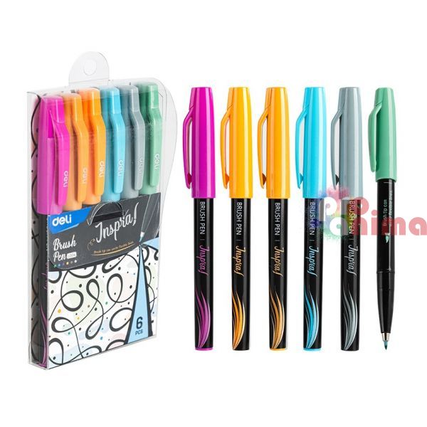 Aкварелни маркери Deli Inspira, връх четка, 6 цвята