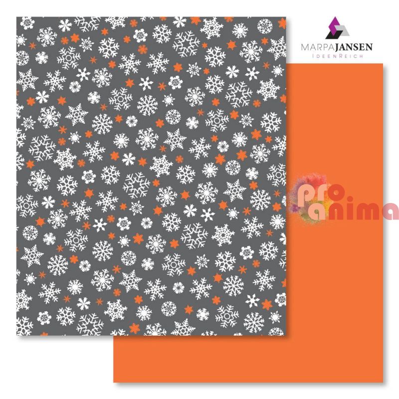 Картон варио Marpa Jansen, 50 x 70 cm, 300 g/m2, бели и оранжеви снежинки