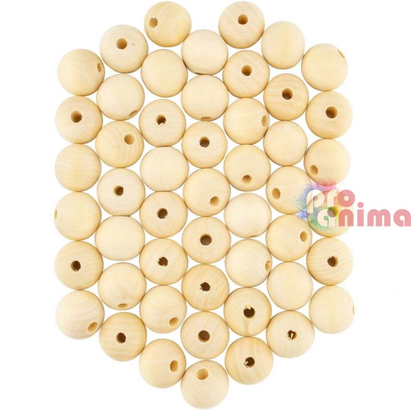 Мъниста дървени, натурални, кръгли, 20 mm, 50 бр.