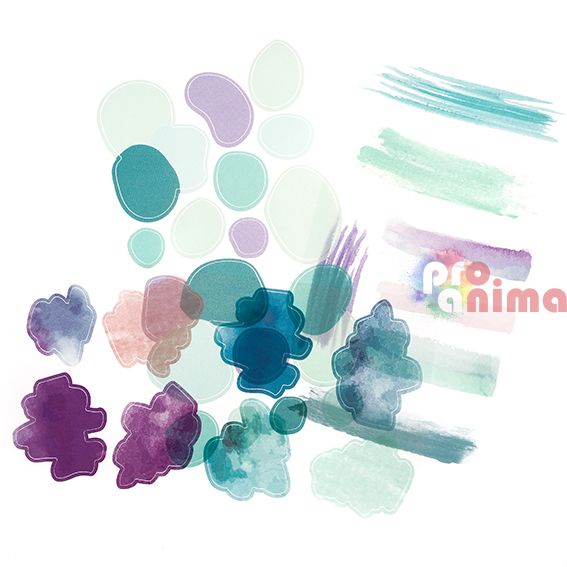 Прозрачни стикери от PVC, матирани, етикети в акварелни форми, 31 бр.