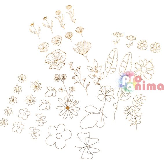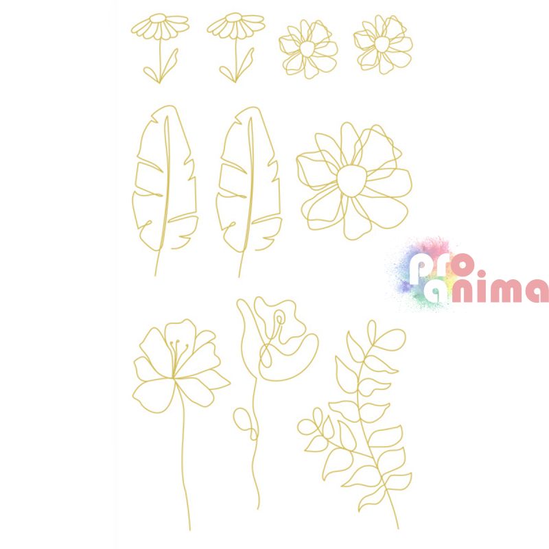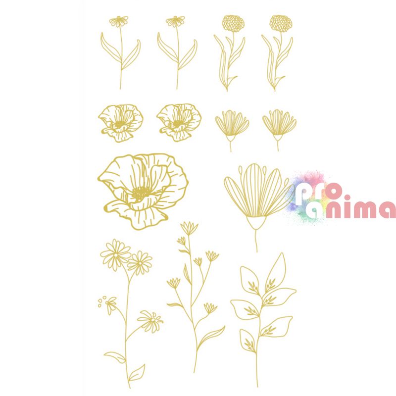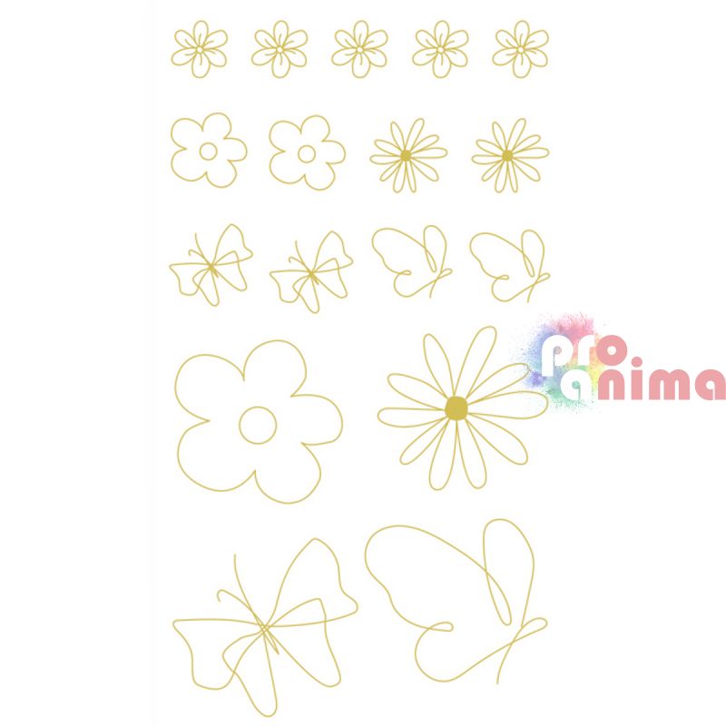 Прозрачни стикери от PVC, матирани, златни цветя, 43 бр.
