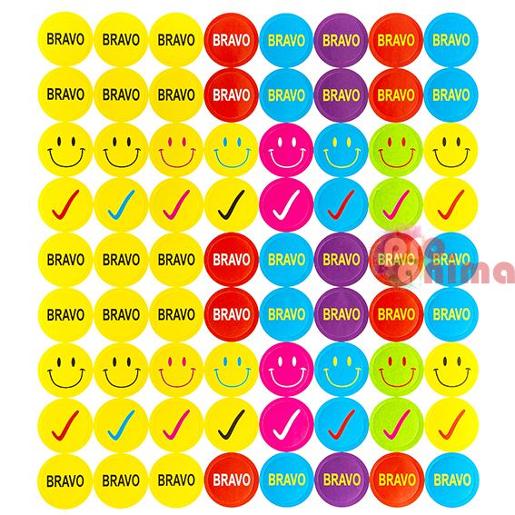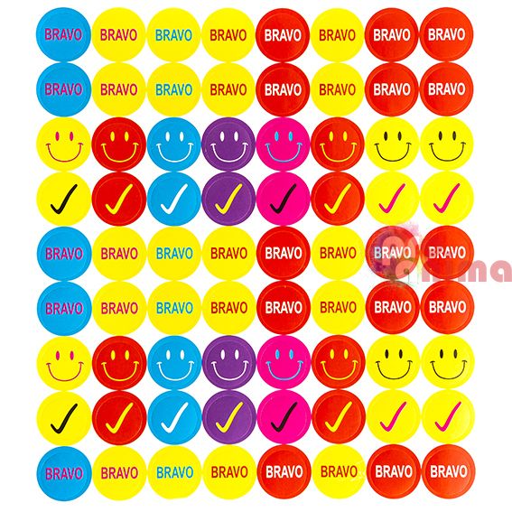 - в опаковката са включени стикери с различни цветове и цветни щампи ( надписи BRAVO, усмихнати лица);