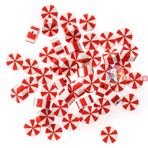 Мъниста от полимерна глина под формата на коледни сладки/бонбони са подходящи за различни крафт проекти с широк спектър на приложение. Мънистата са чудесни за изработка на бижута за празничния сезон- гривни, обеци, висулки, ключодържатели и др. Подходящи са и за украса на коледната елха, коледната маса или на дома.