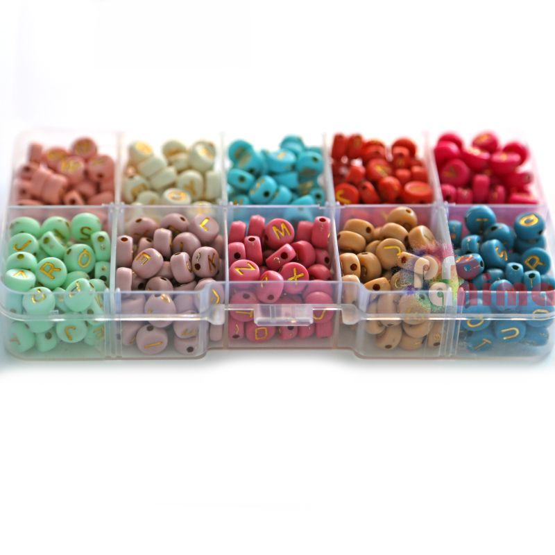 Креативен комплект от кръгли мъниста DP Craft в елегантни цветове, украсени със златисти букви, които ще придадат на вашите творения уникален и стилен характер. Подходящи са за изработка на бижута (гривни, колиета, висулки), персонализирани подаръци и др.