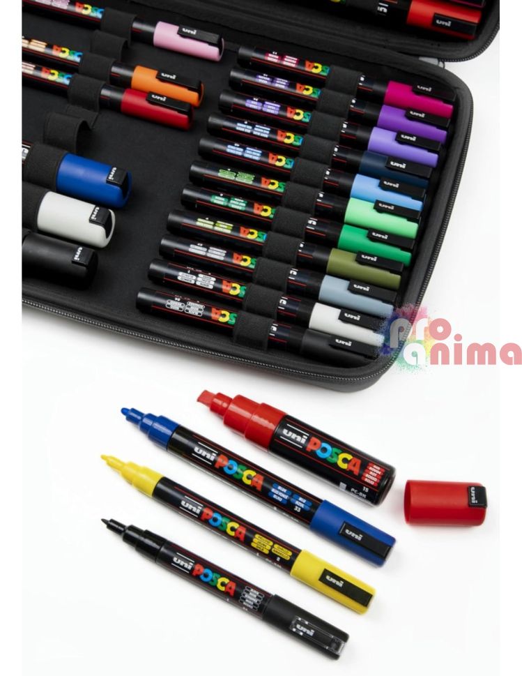- Високакачествен несесер POSCA за лесно транспортиране и съхранение на маркерите.