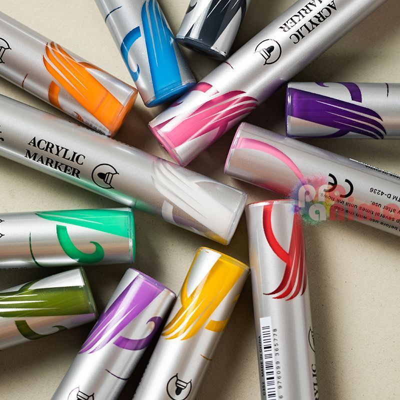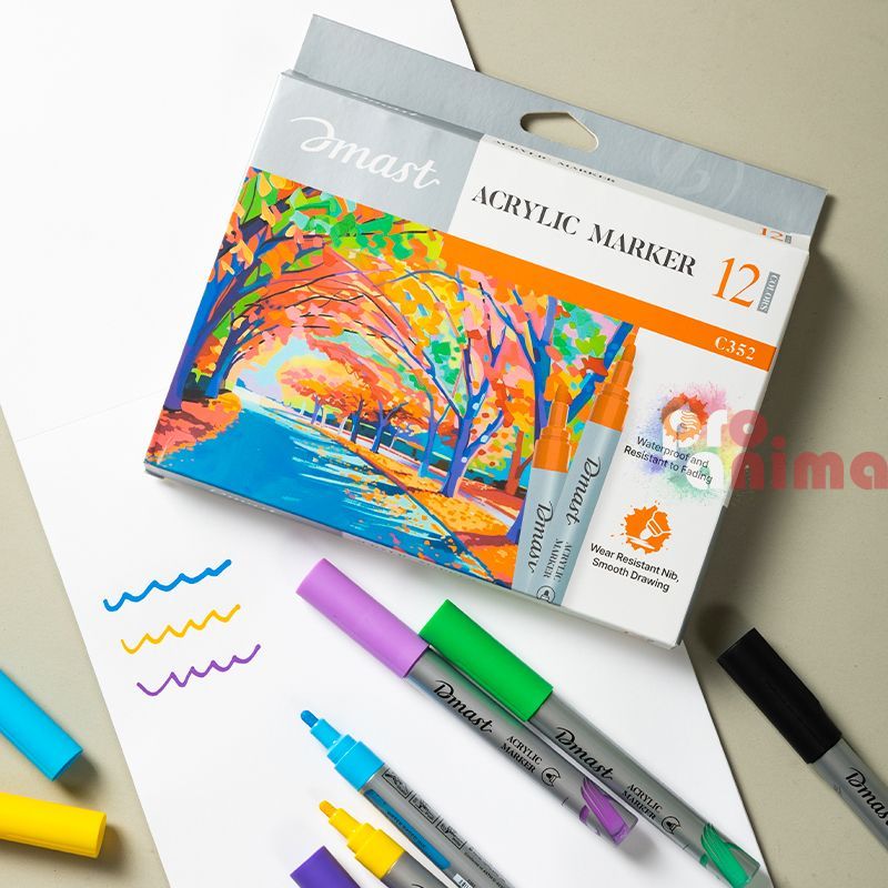 Комплект акрилни маркери Deli Dmast- покривни, универсални маркери за всякакви повърхности. Акрилните маркери Deli Dmast са с мастило на водна основа, подходящо за рисуване върху всякакви повърхности: хартия, метал, дърво, керамика, стъкло, камък и платна за рисуване.
