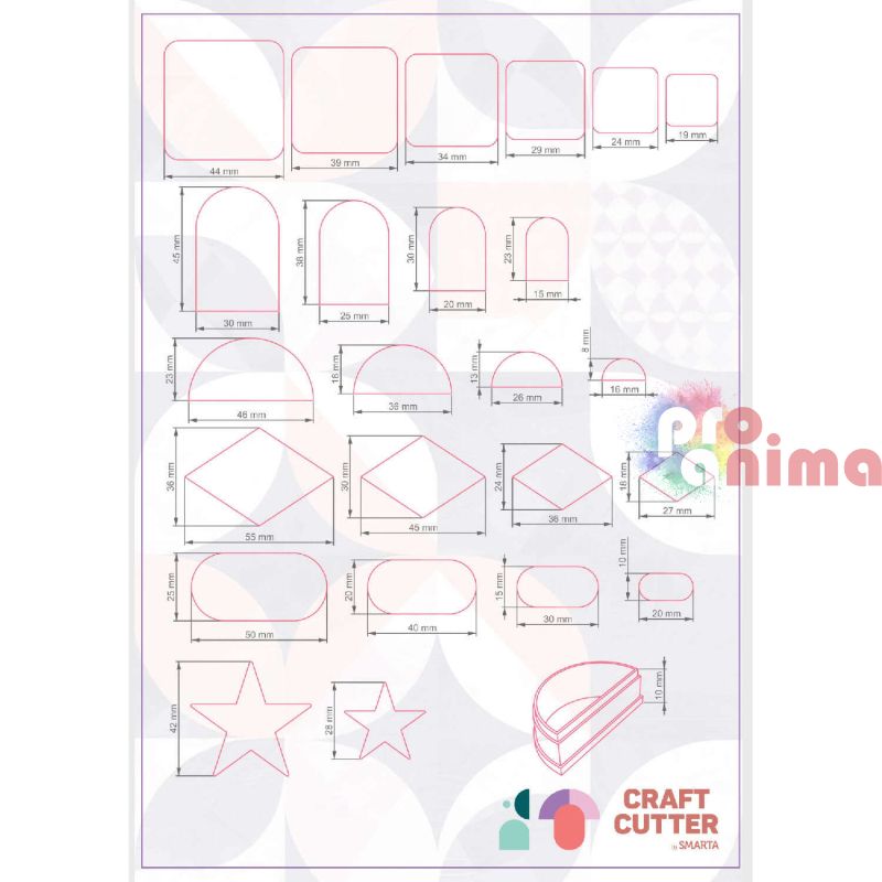 Комплектът за изрязване Smarta Jewelry Cutters съдържа 24 бр. пластмасови формички с различни по големина геометрични дизайни. Подходящи са за направата на красиви фигурки и елементи за всякакви арт и крафт проекти.