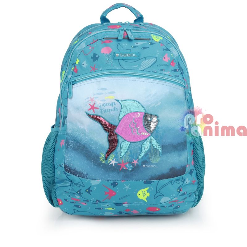 Раницата за училище Gabol Acqua, изработена от устойчиви и издръжливи материали, впечатлява с доказани в годините здравина, удобство, функционалност и страхотен дизайн. Тази ученическа раница е не само красива, но и изключително практична, благодарение на отличното й разпределение и допълнителни джобове.