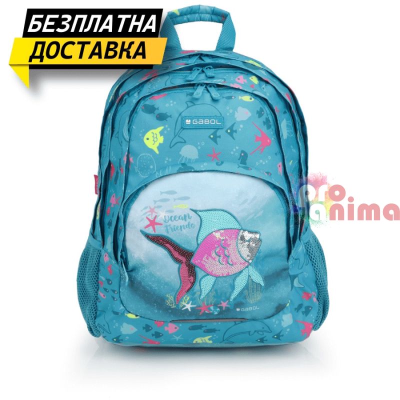 Ученическа раница за момиче Gabol Acqua 23574018, три отделения, мрежест гръб, водоотблъскваща материя