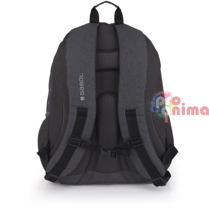 Ученическа раница за момче Gabol Wolf 23724016, три отделения, мрежест гръб, сива