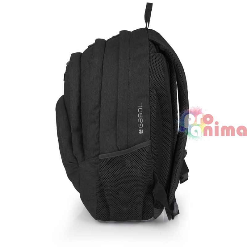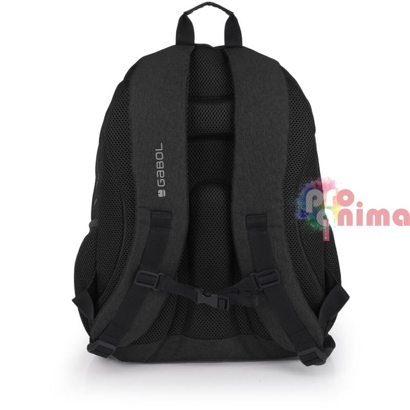 Ученическа раница за момче Gabol Wolf 23724001, три отделения, мрежест гръб, черна