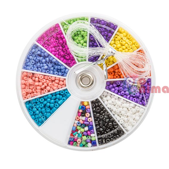- мъниста (2 mm) в 12 цвята x 1.5 g;