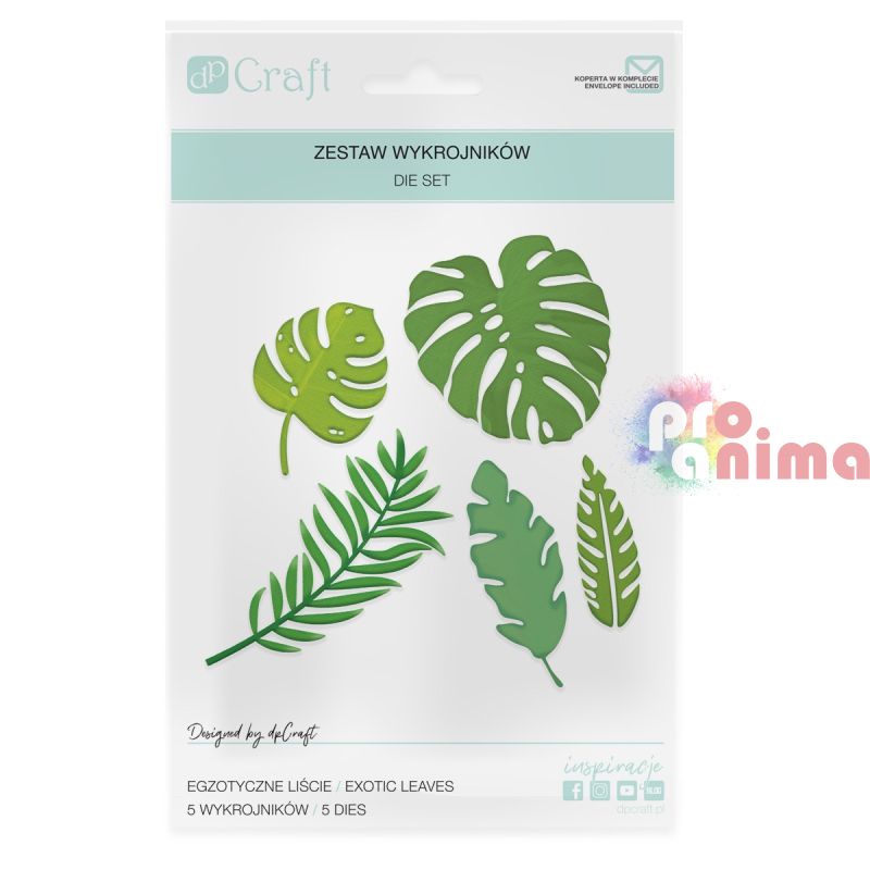 Щанците "Екзотични листа" са съвместими с машините за рязане и релеф (ембос) на DP Craft и всички останали от този тип, предлагани на пазара. Те са подходящи за рязане на хартия (до 300 g/m2), картон, foam (гумирани листи). С тяхна помощ лесно може да създадете ръчно изработени картички, покани, пликове, уникални албуми, кутии за подаръци, сезонни композиции, венци и др.