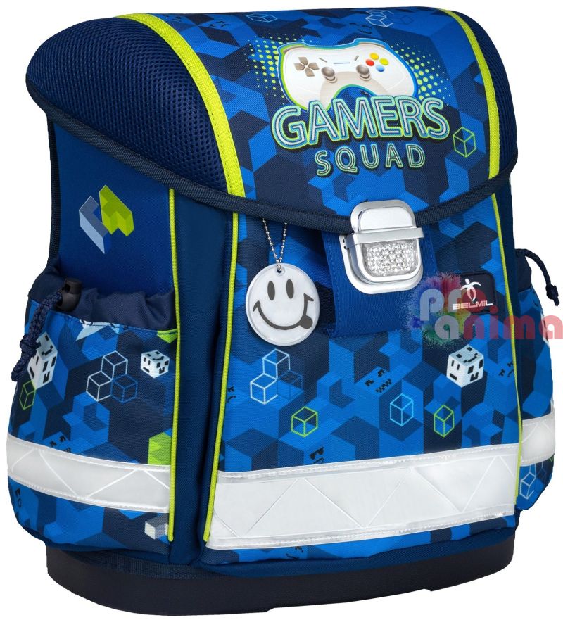 Комплект за първи клас Belmil Gamer Squad включва: ергономична ученическа раница, 2 несесера (твърд и мек) и торба за спорт.