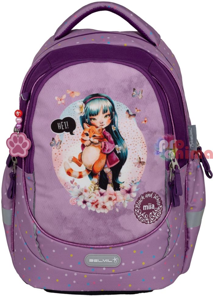 Ученическите раници Belmil се отличават със своя изключителен комфорт, съчетан с високо качество на използваните материали. Раницата за училище Belmil Miia 3 е от най-популярните и търсени модели раници на производителя, поради практичност, ергономичност и страхотен дизайн. Ексклузивна лимитирана серия на българската илюстраторка Ивайла Стоева (Miia). Тежи само 700-750 г.