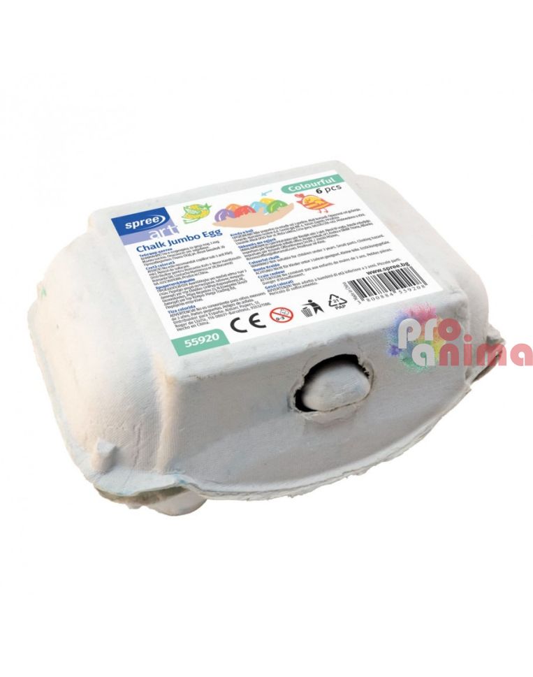 Цветни тебешири Spree Art Jumbo Egg – забавен и креативен начин да вдъхнете живот на всяка повърхност! Този комплект включва 6 големи тебешира във формата на яйца, в различни цветове, които са идеални за малки и големи художници.
