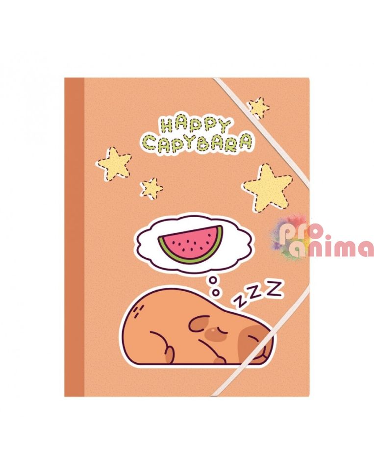 Папка с ластик от серията Spree Capybar. Тя е с формат A4 идеална за съхранение на бележки, уроци, рисунки и други важни неща. Папката е изработена от издръжлив и лек полипропилен, тя е едновременно практична и удобна. Забавният дизайн с капибара ще внесе усмивки във всеки учебен ден!