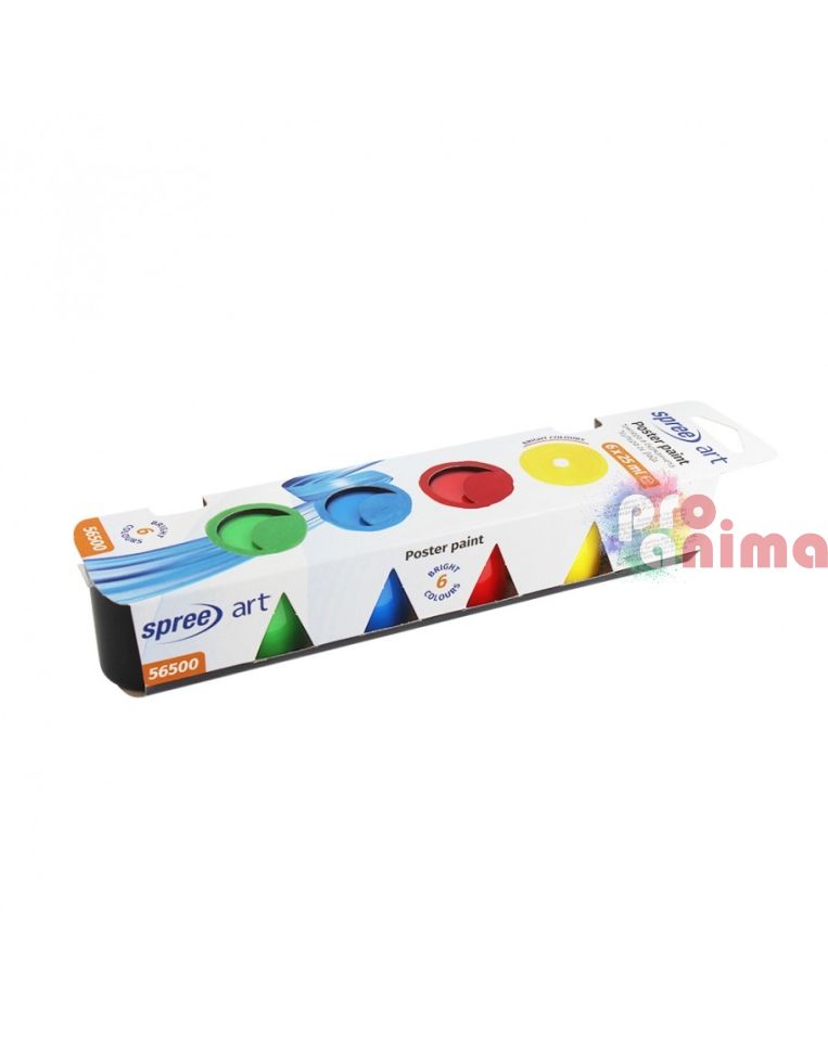Открийте света на изкуството с темперните бои/гваш Spree, идеални за малки и големи художници! Този комплект съдържа 6 ярки и наситени цвята, всеки в отделно бурканче с вместимост 25 ml. Независимо дали сте начинаещ или опитен артист, тези бои са лесни за употреба и предлагат отлична покривност.