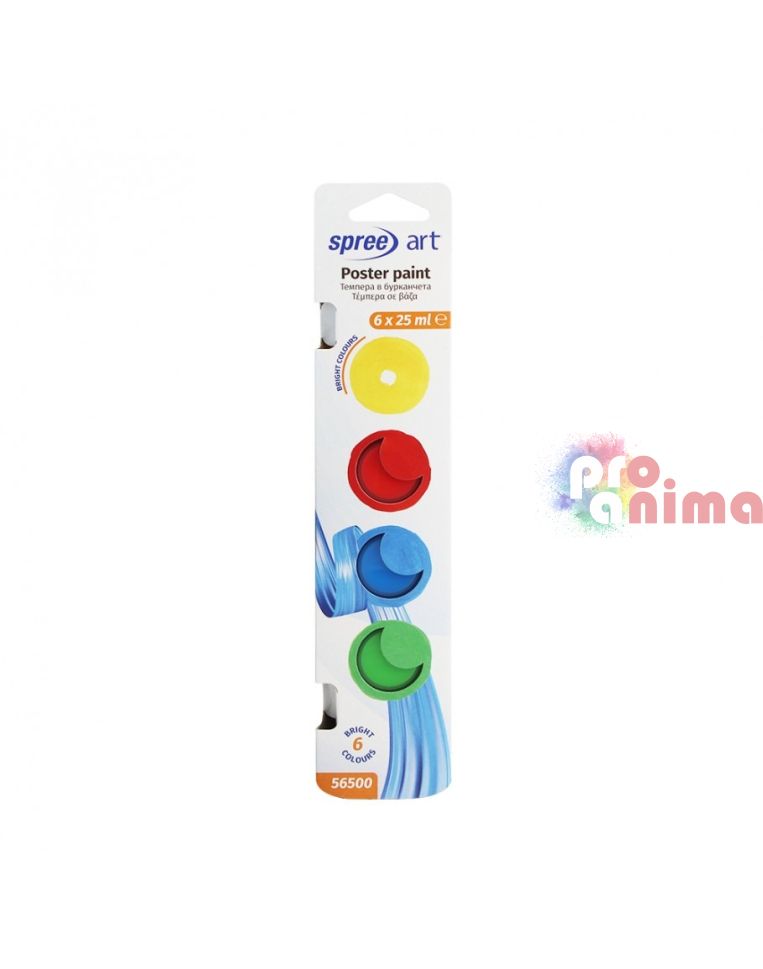 Темперни бои/гваш Spree, 6 цвята x 25 ml, в бурканчета