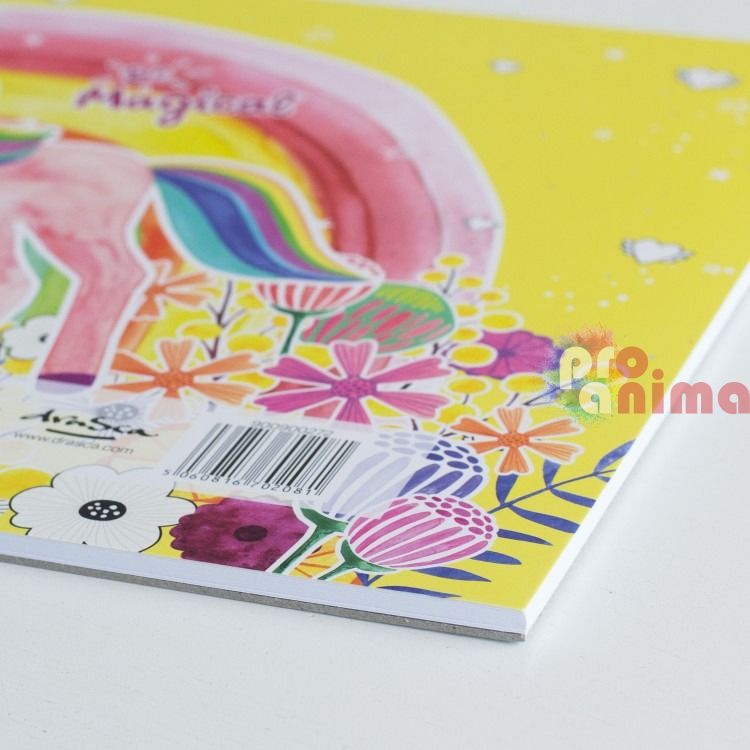 Детският скицник от Drasca "Еднорог" е подходящ за предучилищна възраст, начално училище или просто за забавни рисувателни приключения.