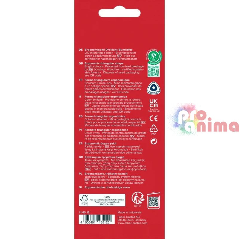 Цветните моливи Faber-Castell Triangular са произведени от висококачествени материали и отговарят на всички европейски стандарти за безопасност. Те са подходящи за употреба в училище, у дома и в студиото. Насладете се на безкрайни часове творчество с тези прекрасни моливи!