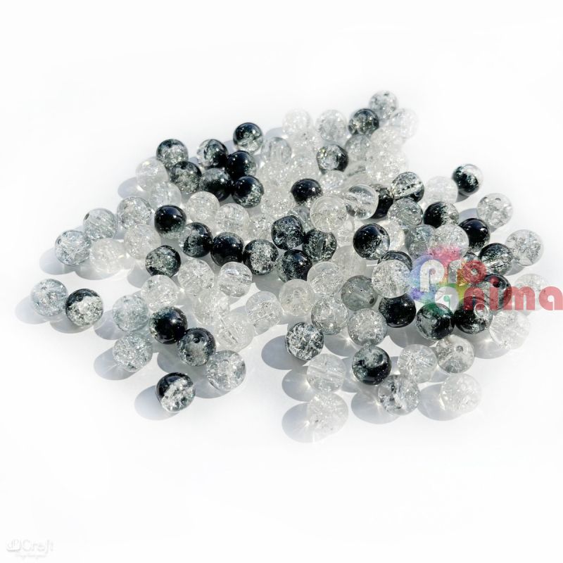 Мъниста DP Craft, стъклени, 8 mm, 100 бр., черно-бели, напукани