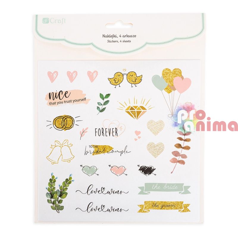 Стикери- хартиени, акварелни, DP Craft, 4 листа- 80 бр., Любов и брак