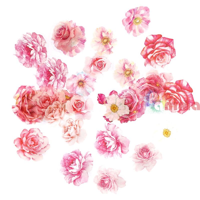 Стикери от прозрачно PET фолио, цветя, 30 бр., розови