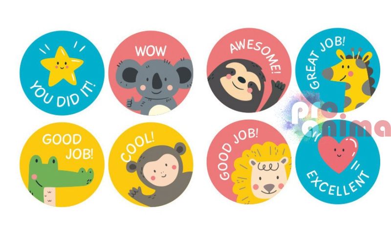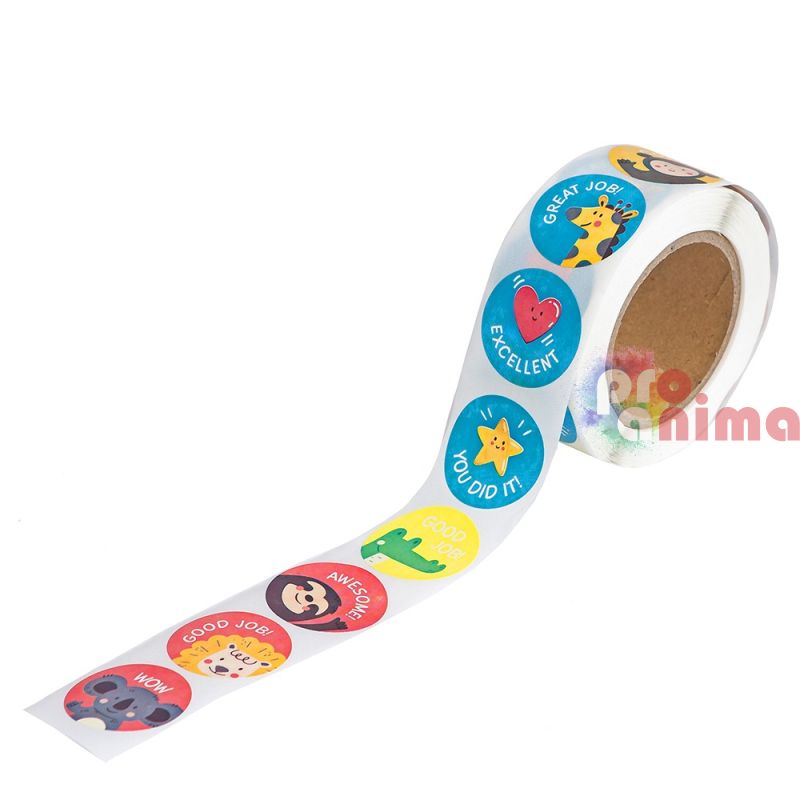 Стикери на ролка с мотивиращи послания, Животни и символи, 500 бр.