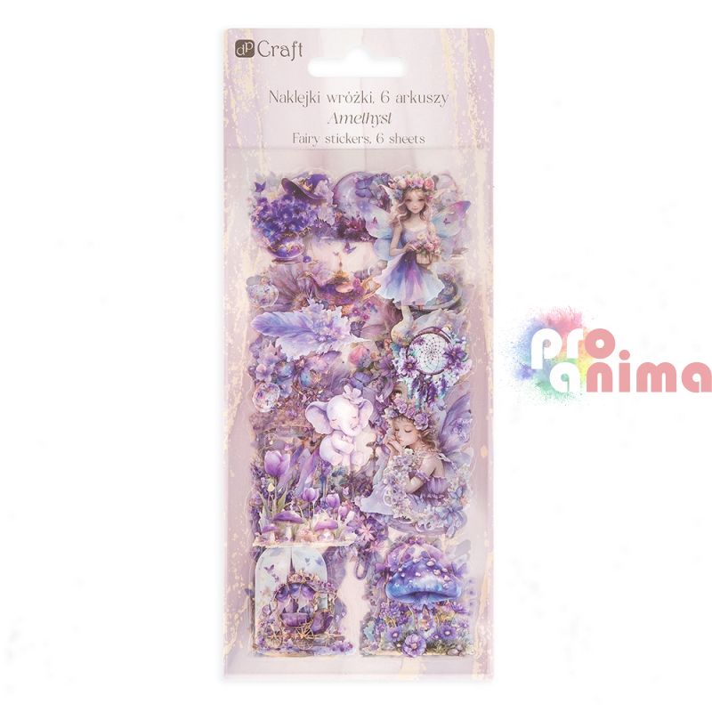 Стикери DP Craft, изработени от висококачествено, прозрачно PET фолио с мотиви на феи в лилави нюанси. Те са прекрасно допълнение към техниките скрапбукинг, декупаж или изработването на картички. Перфектни са за декориране на албуми, дневници, бележници, покани.