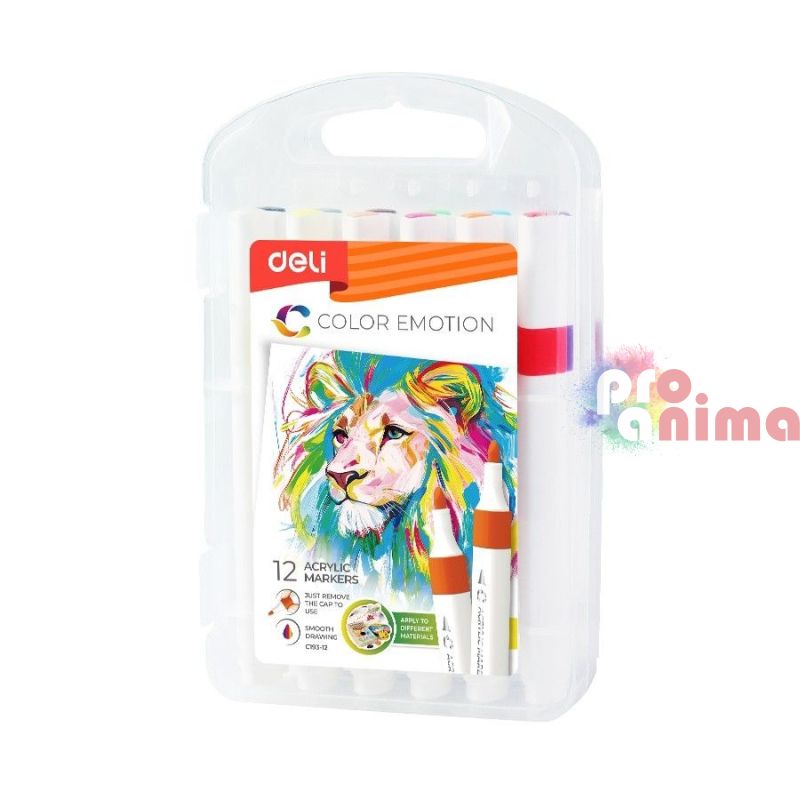 Комплект акрилни маркери Deli Color Emotion, 12 цвята, объл връх