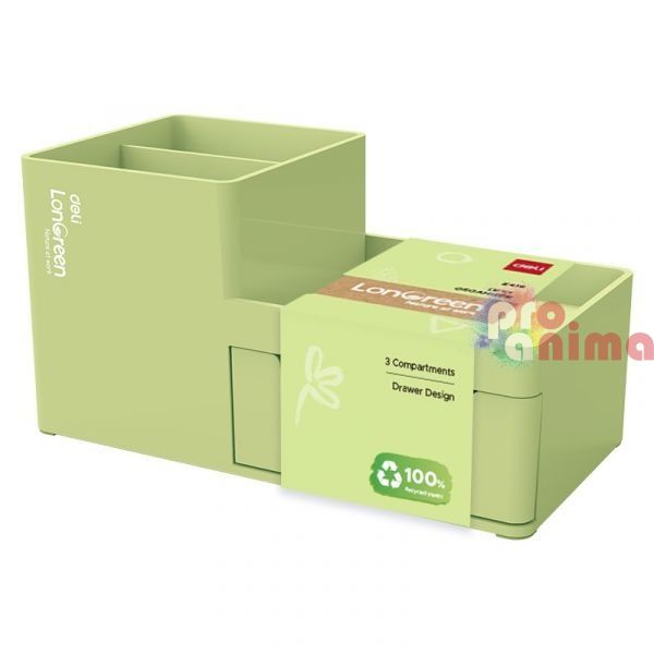 Органайзер за бюро Deli LonGreen с 4 отделения и мултифункционален дизайн.