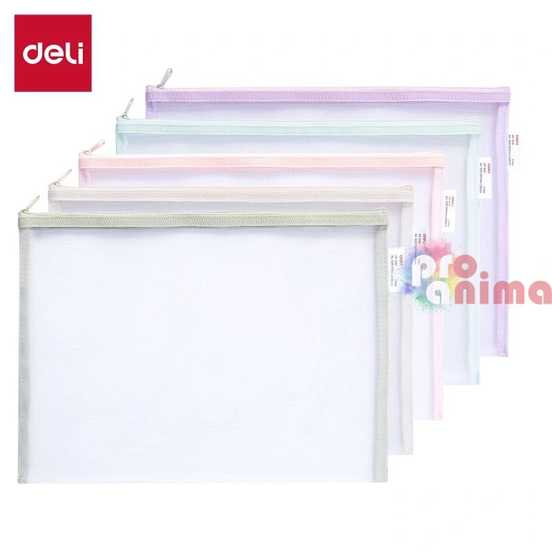Папка с цип Deli, формат A4, мрежа от полиестер, 330 mic
