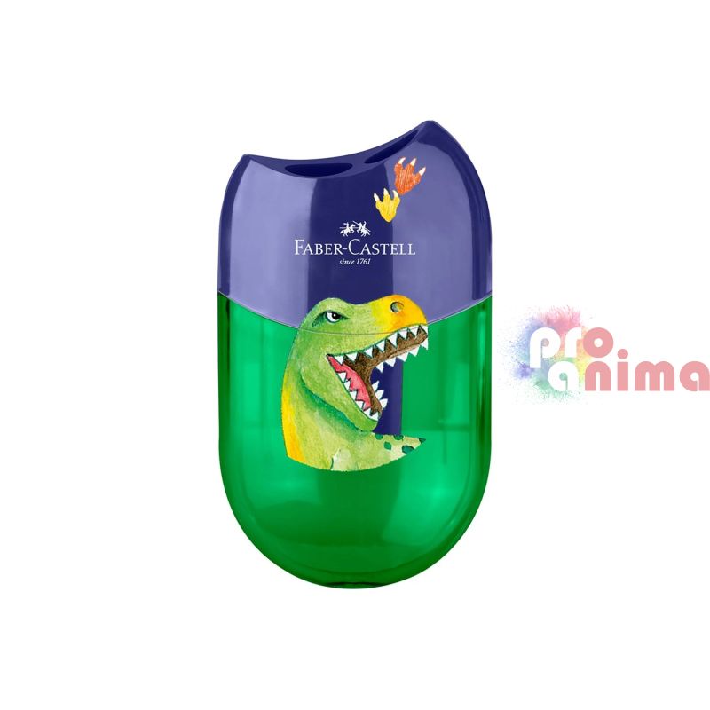 Висококачествена двойна острилка Faber-Castell за тънък и дебел молив, с атрактивен дизайн с динозавър.