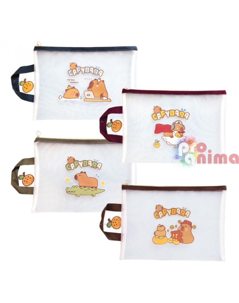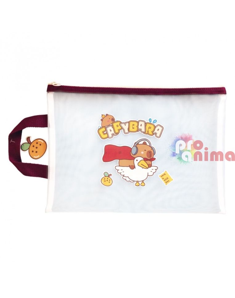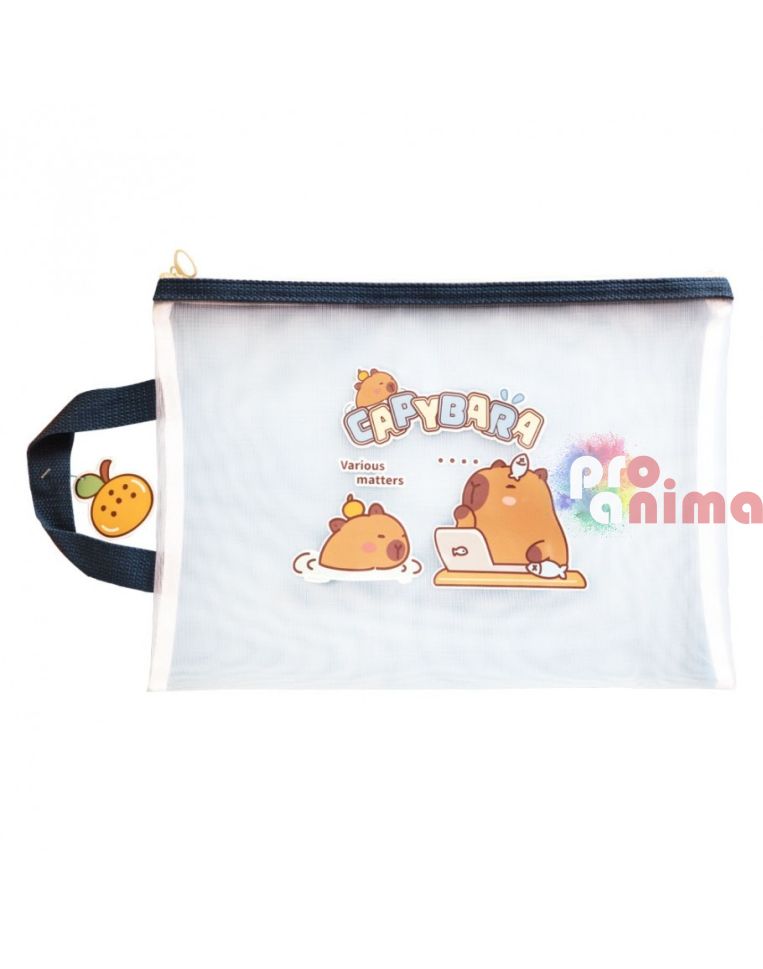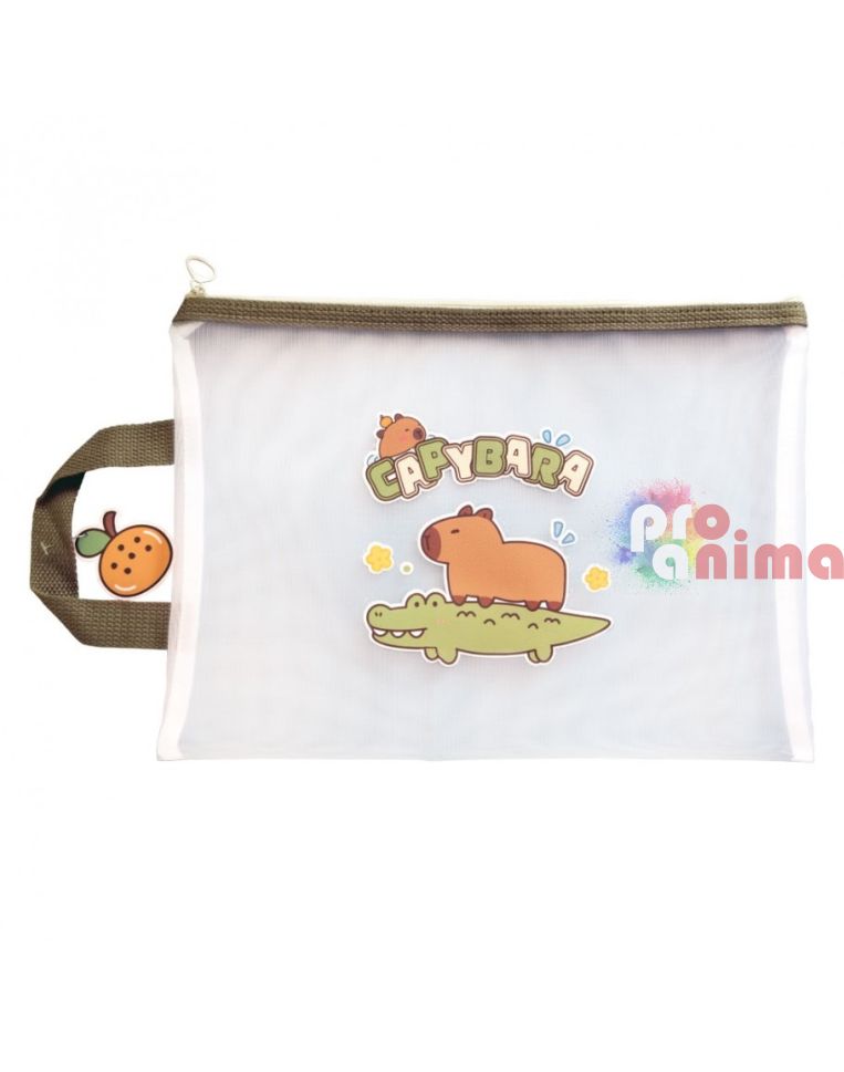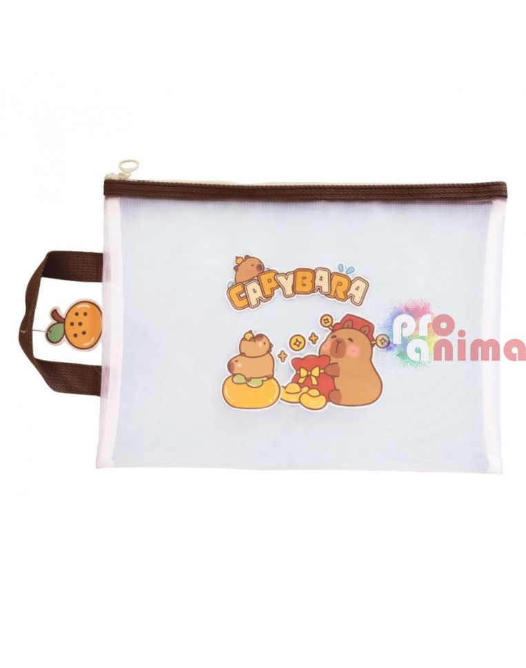 Папка с цип и дръжка Капибара, 34 x 24.5 cm, прозрачна мрежа