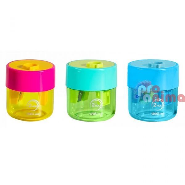 Двойна пластмасова острилка за моливи Deli EH558 с контейнер.