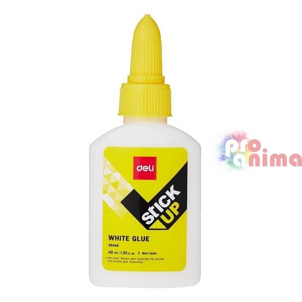 Бяло универсално течно лепило PVA Deli с прецизен дозатор.