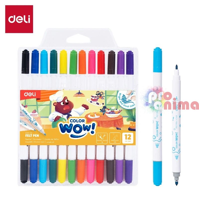 Флумастери Deli Color Wow, двувърхи, 12 цвята